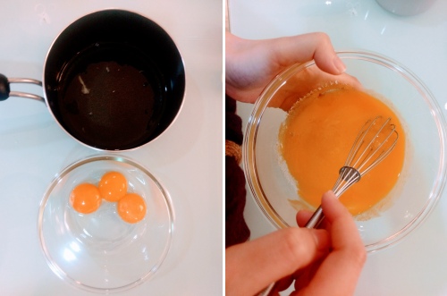 3.蛋黃液加入馬斯卡彭cheese與打發蛋白後拌勻