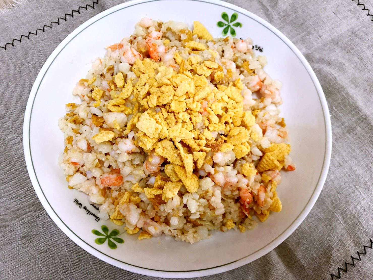 6.起鍋後加入壓碎的金牛角蝦鬆就完成囉!!用金牛角取代油條方便又更健康,口感也十分搭配。