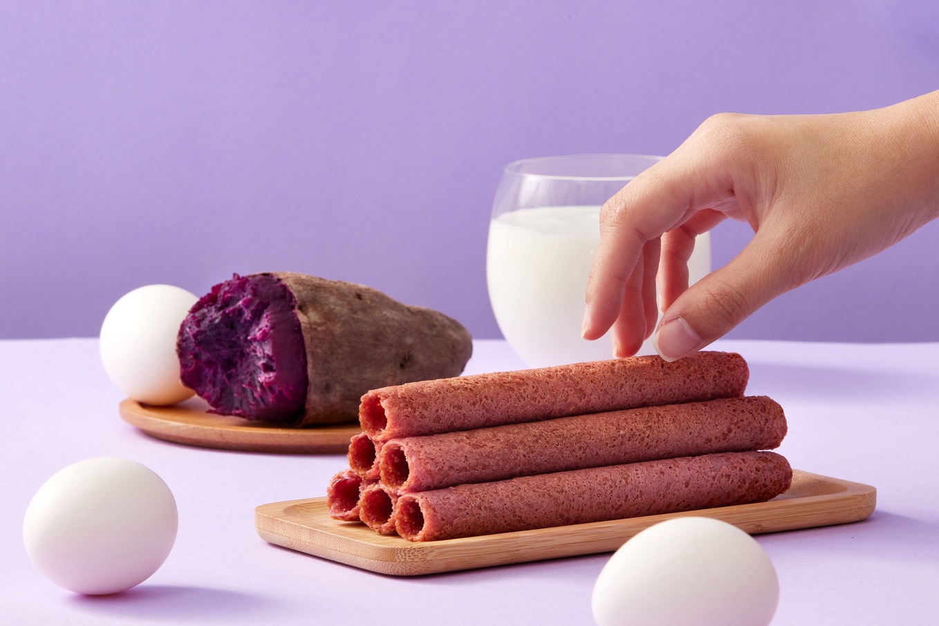 Eggs, Vegetable Oil [Refined Palm Oil, Propylene Glycol Esters of Fatty Acids(477), Glycerin Fatty Acid Ester(471)], Wheat Flour, Sugar, Purple Sweet Potato Powder, Beetroot Powder (Concentrated Beetroot Juice, Maltodextrin), Sweet Potato Flavor, Vitamin C [Antioxidant(300)], Pineapple Extract (Pineapple Extract, Maltodextrin)