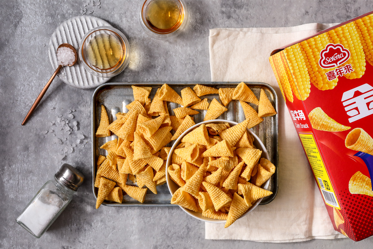 Corn Puffs (Non-GMO Corn, Sugar, Mono- and Diglycerides of Fatty Acids, Baking Soda, Salt), Coconut Oil, Sea Salt, Powdered Flavor B-23 (Flavor, Monosodium L-Glutamate, Disodium 5'-Inosinate, Calcium phosphate, Dextrose Monohydrous, Medium-Chain Triglycerides, Hydrolyzed Soy Protein, Sugar, Glycine, DL-Alanine, Succinic Acid, DL-Methionine, L-Lysine Monohydrochloride), Corn Powdered Flavor (Flavor, Trehalose, Dextrin, Rice Bran Oil, Sodium Starch Octenylsuccinate, Medium-Chain Triglycerides, Refined Palm Oil, Rosemary Extract), Monosodium L-Glutamate